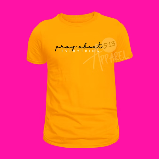 Carry faith and style with you every day with our Pray About EVERYTHING T-Shirt. Designed to inspire, this tee is more than just clothing—it’s a daily reminder to keep prayer at the center of everything you do.