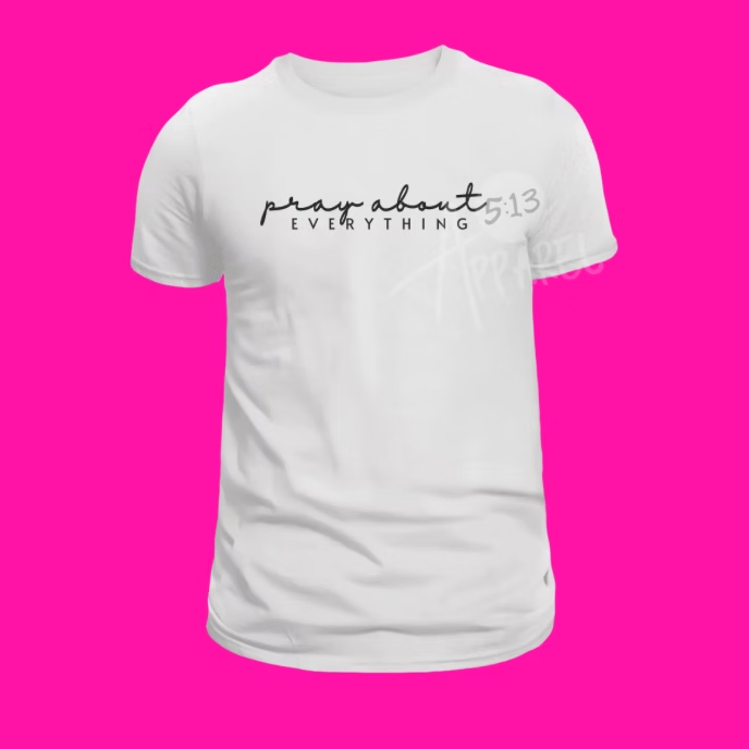 Carry faith and style with you every day with our Pray About EVERYTHING T-Shirt. Designed to inspire, this tee is more than just clothing—it’s a daily reminder to keep prayer at the center of everything you do.